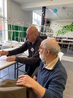 Tijdens de pauze mochten we allemaal op auditie komen bij Jerry, er werd immers de laatste hand gelegd aan de menu van ons buffet voor de volgende repetitie. We krijgen daarvoor eerst ‘stemvorming’ van Griet De Meulder.